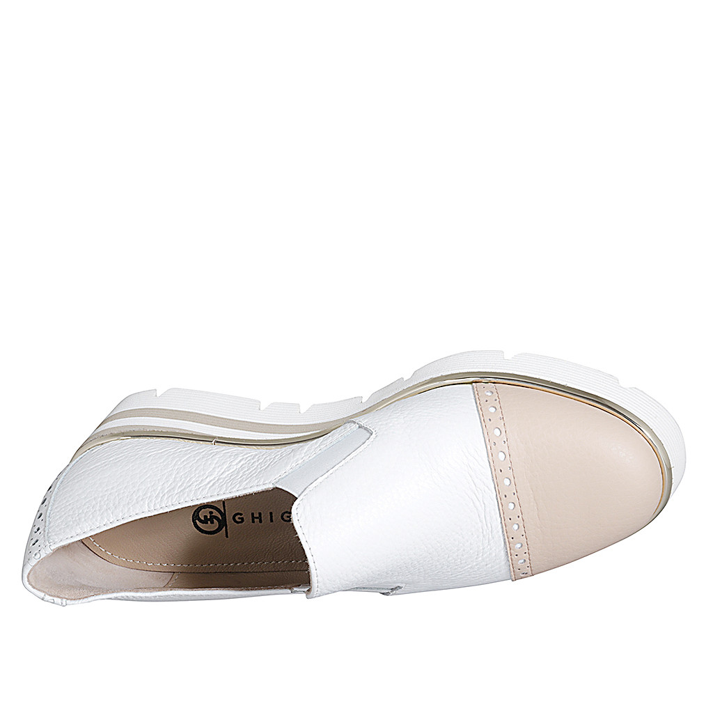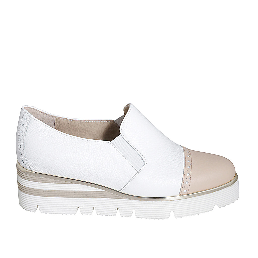 Zapato para mujer en piel blanca y beis con elastico y puntera cuña 4