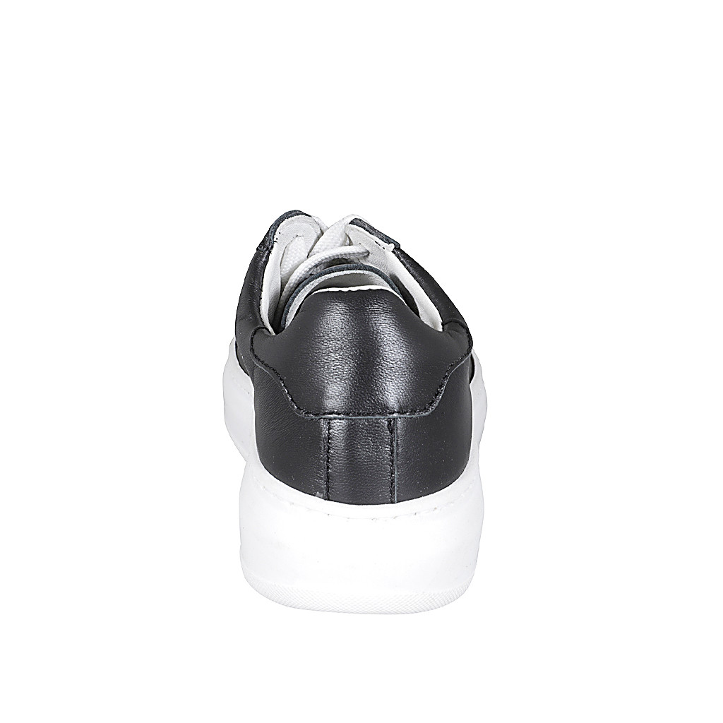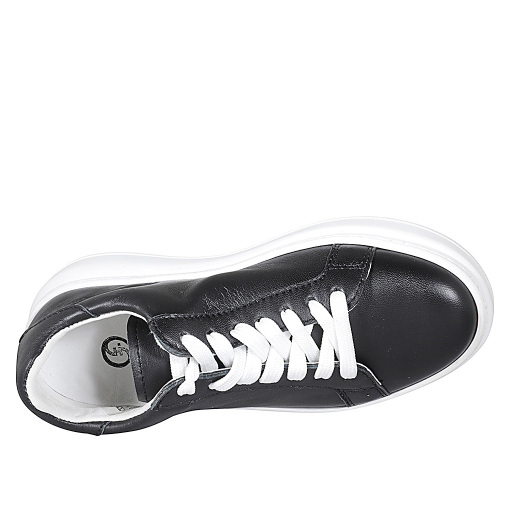 Zapato con cordones y plantilla extraible para mujer en piel negra cuña 4 - Tallas disponibles:  35, 42, 44