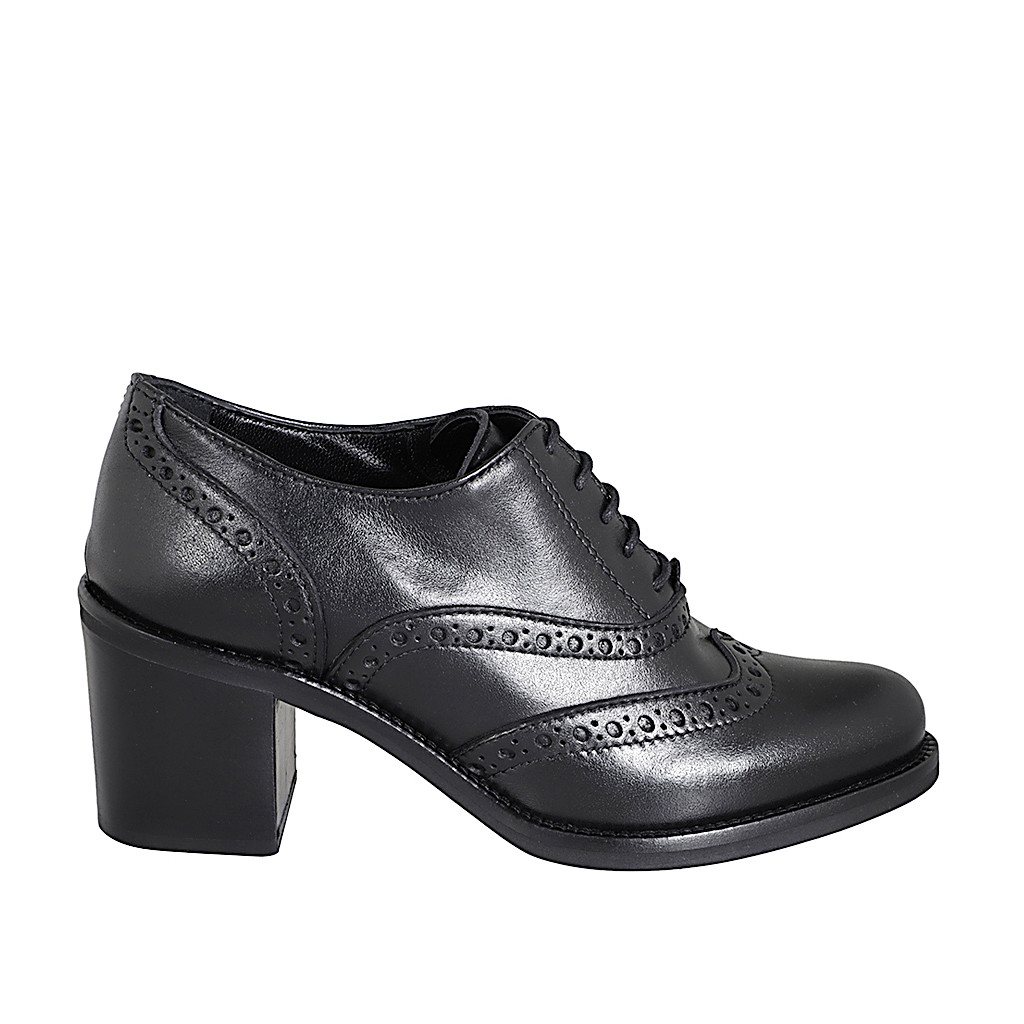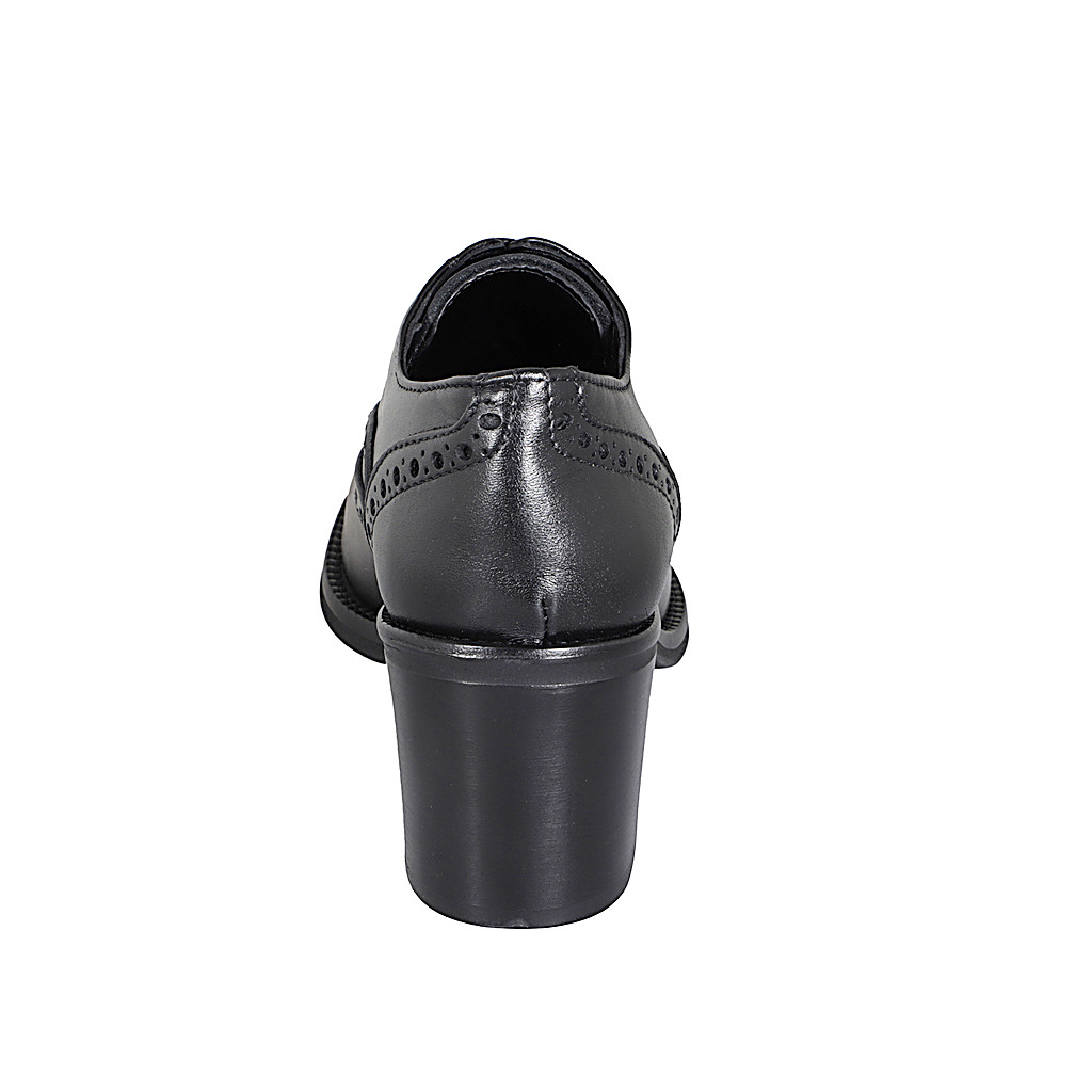 Zapato Oxford con cordones para mujer en piel negra con punta de ala tacon 7 - Tallas disponibles:  32, 33, 34, 35, 42, 43, 44, 45, 46