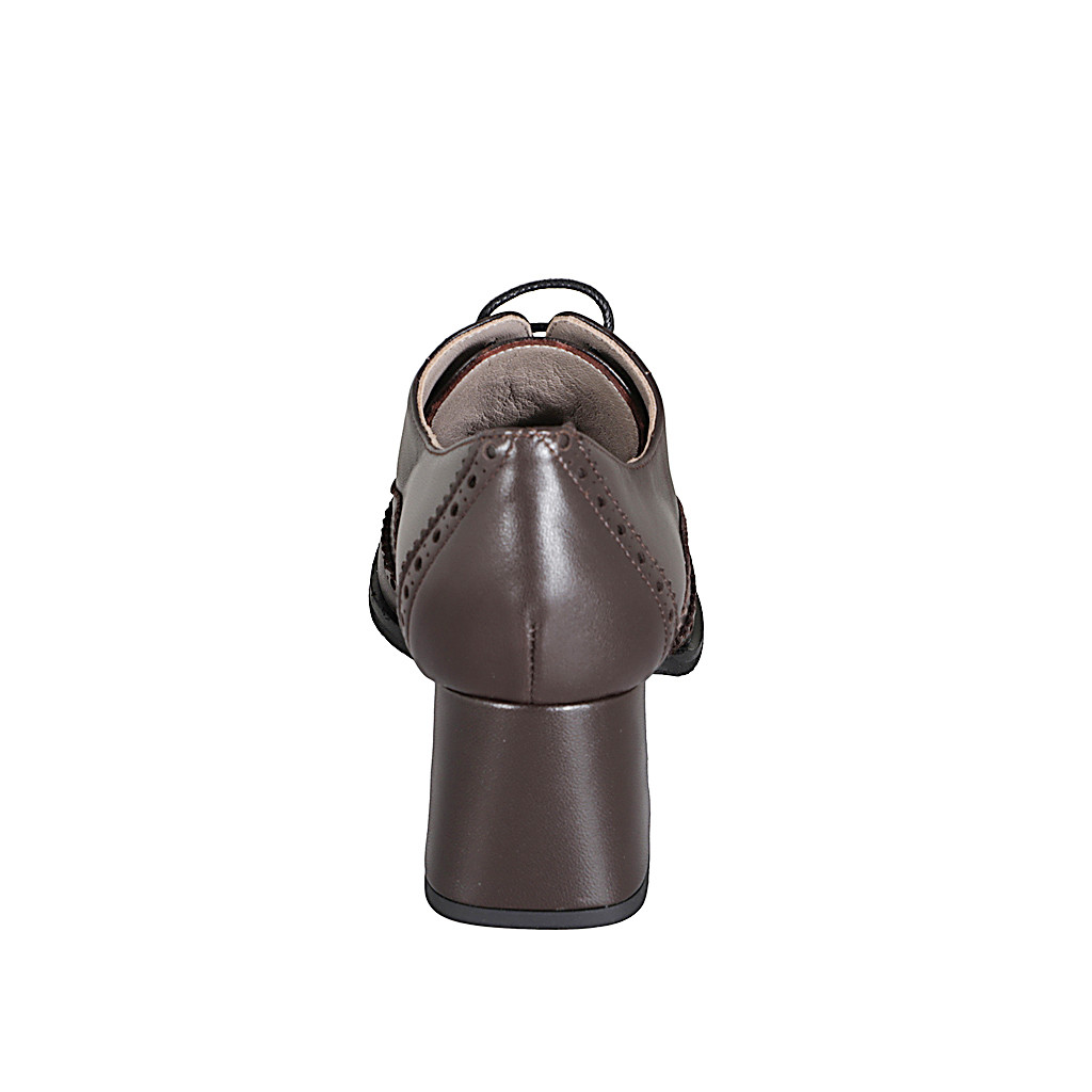 Zapato Oxford con cordones para mujer en piel marron con punta de ala y tacon 5