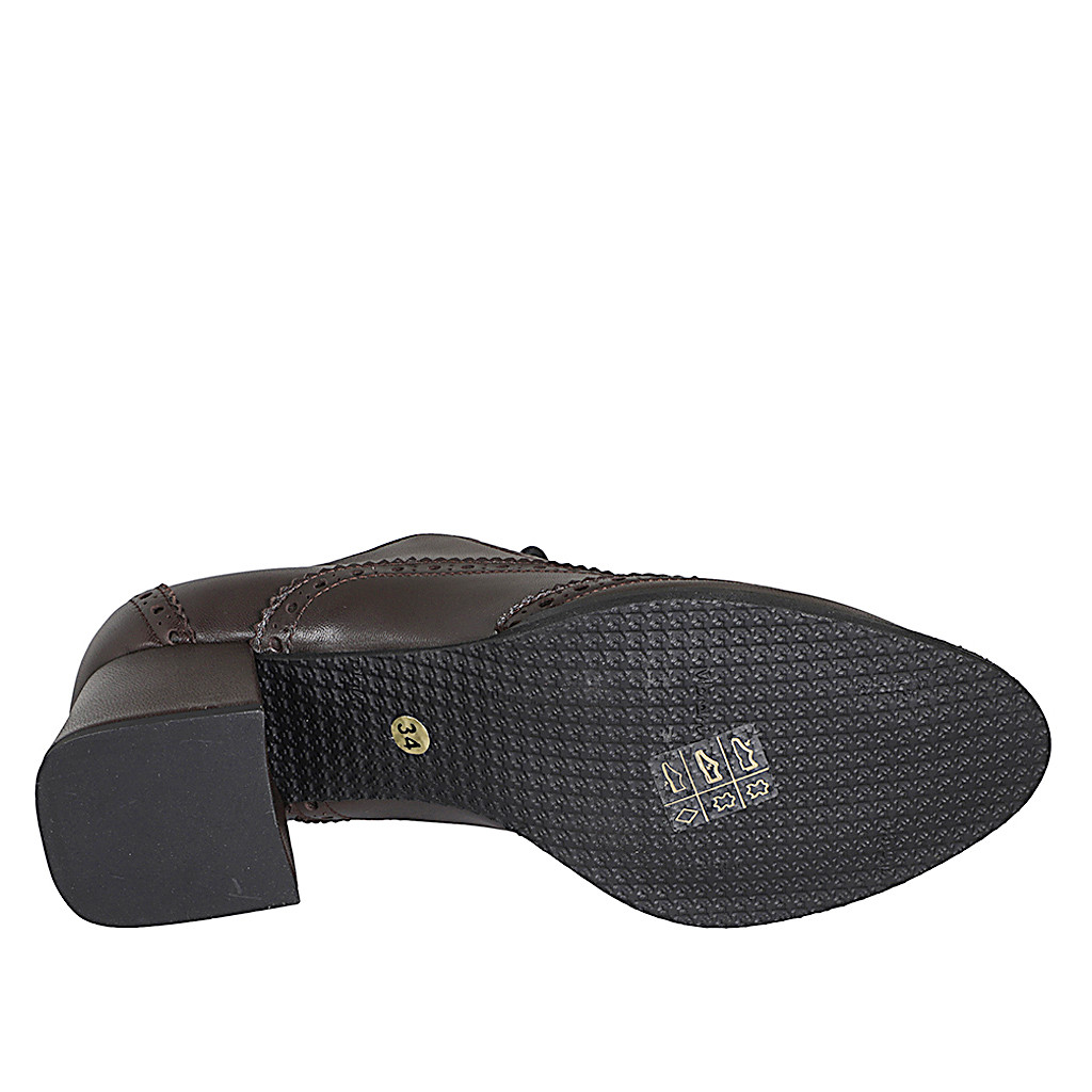 Zapato Oxford con cordones para mujer en piel marron con punta de ala y tacon 5 - Tallas disponibles:  32, 33, 34, 35, 42, 43, 44, 45, 46