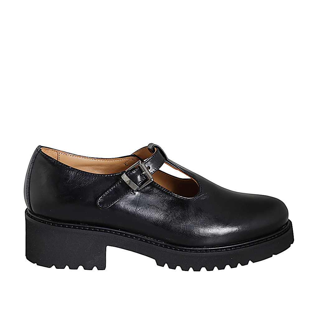 Zapato Mary Jane con cinturon charleston para mujer en piel negra tacon 4