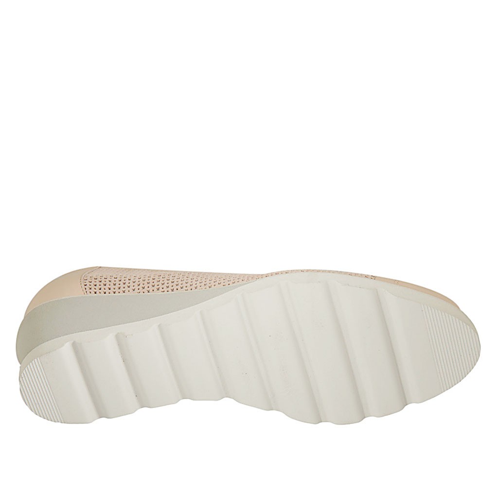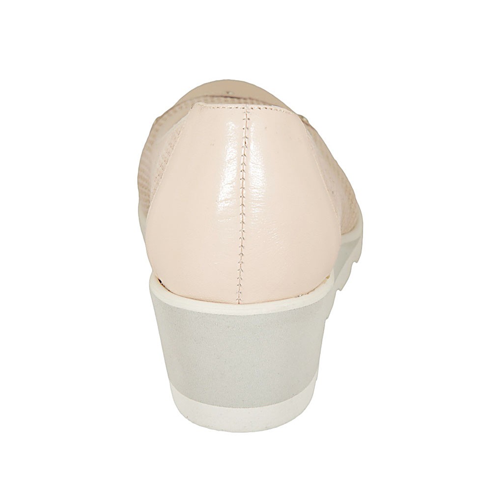 Zapato de salon con tachuelas para mujer en gamuza perforada y piel rosa cuña 4 - Tallas disponibles:  42