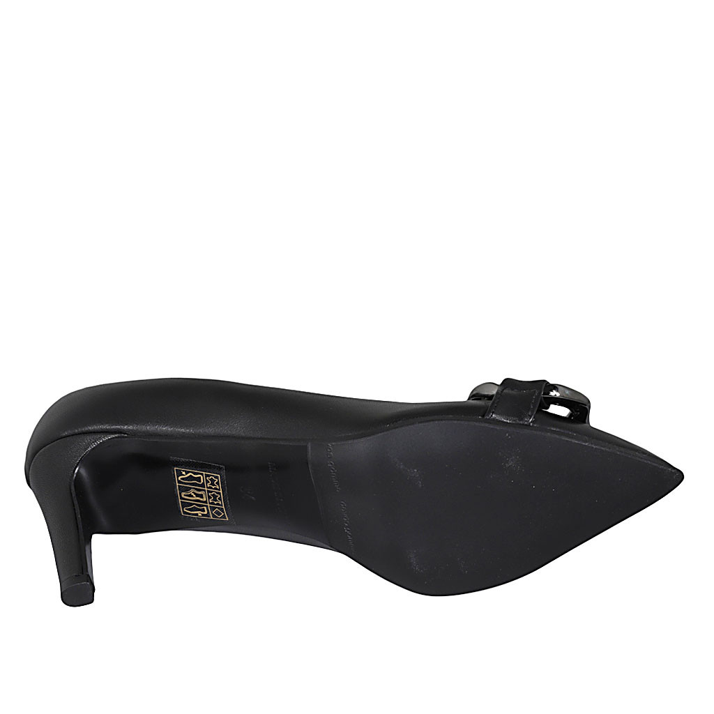 Zapato de salon para mujer en piel negra con cadena tacon 8 - Tallas disponibles:  32