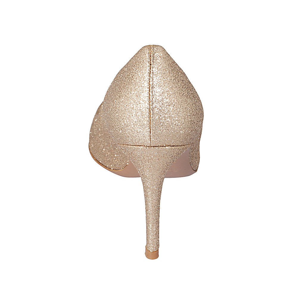 Zapato de salon en piel oro brillante para mujer tacon 8