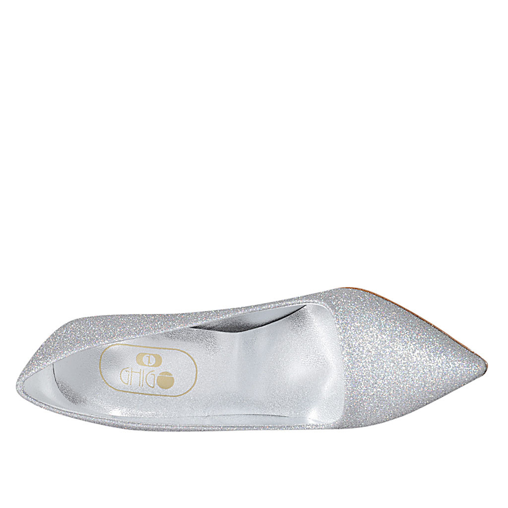 Zapato de salon para mujer en piel plateada brillante con reflejos multicolores tacon 8 - Tallas disponibles:  42, 43