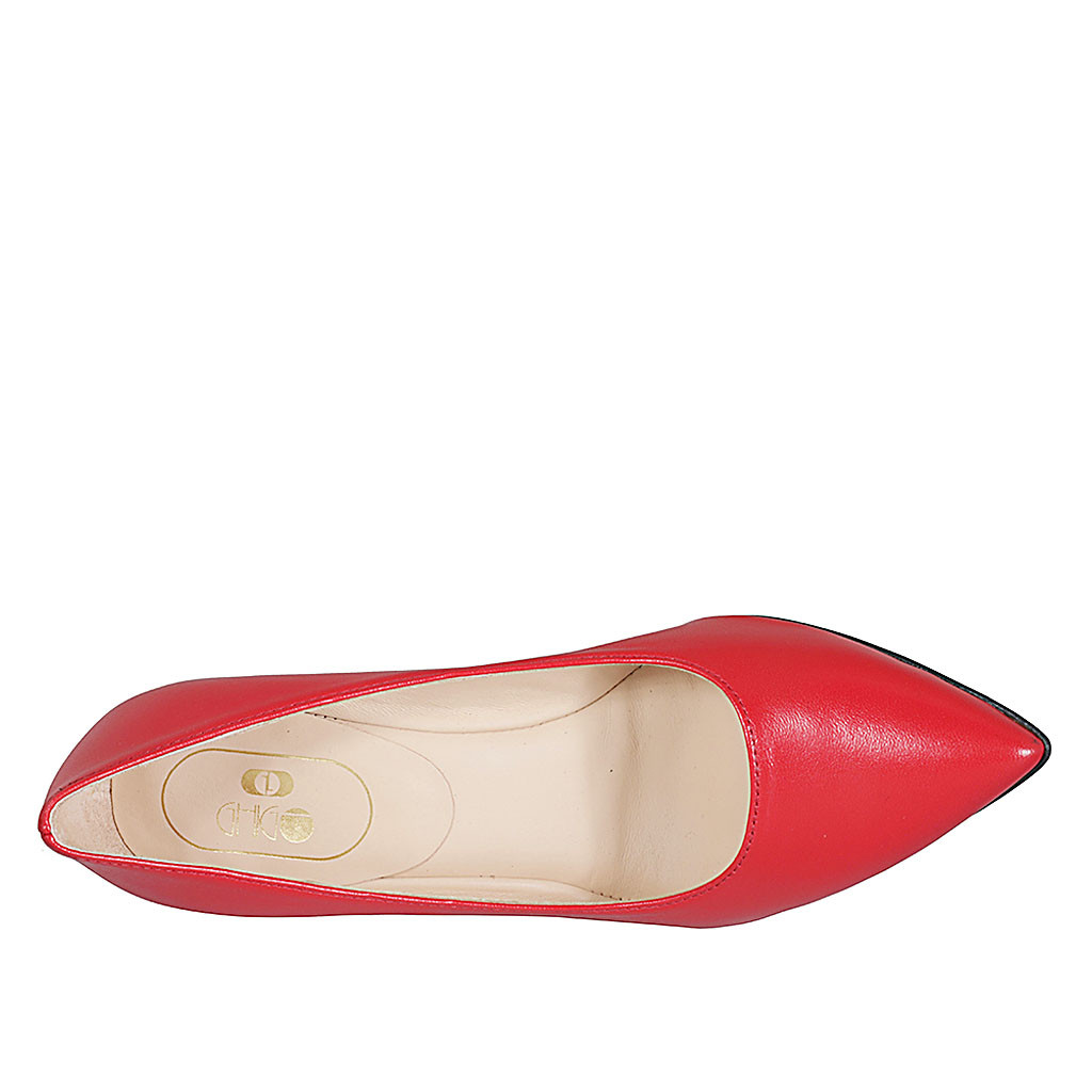 Zapato de salon puntiagudo para mujer en piel roja tacon 7