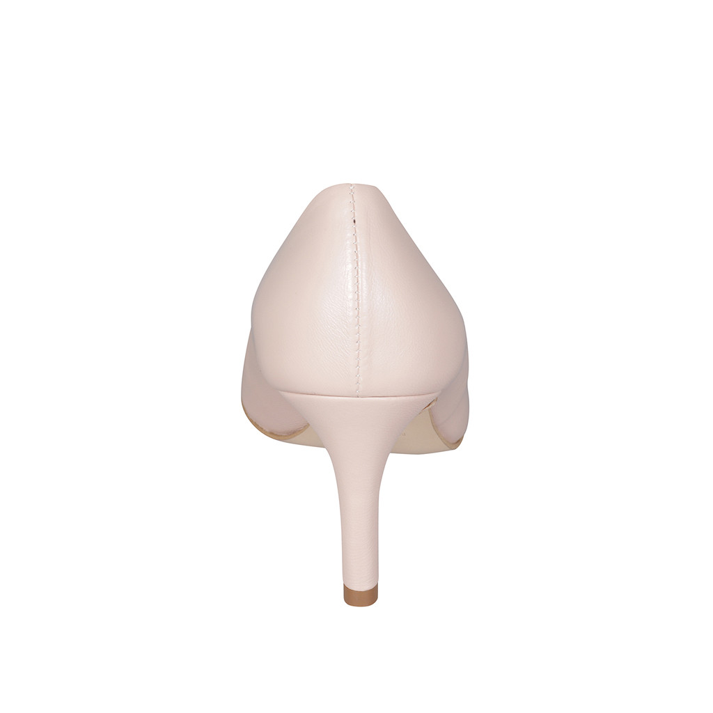 Zapato destalonado para mujer en piel beis y vinilo transparente con elástico y moño tacon 2