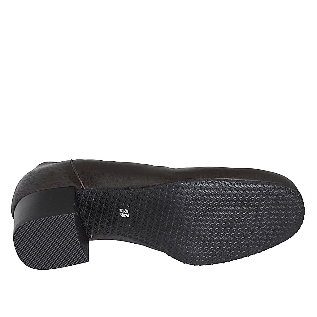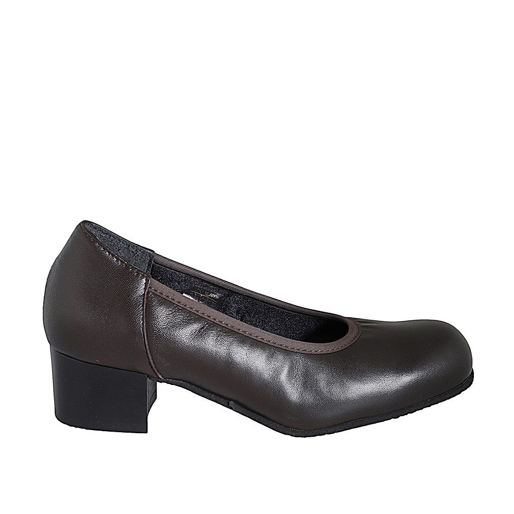 Zapato de salon para mujer con plantilla extraible y elastico en piel marron oscuro tacon 4