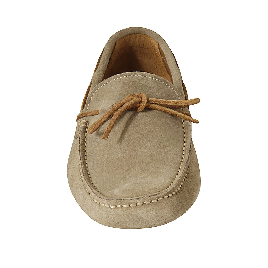 Mocasino para hombres con cordones en gamuza beis