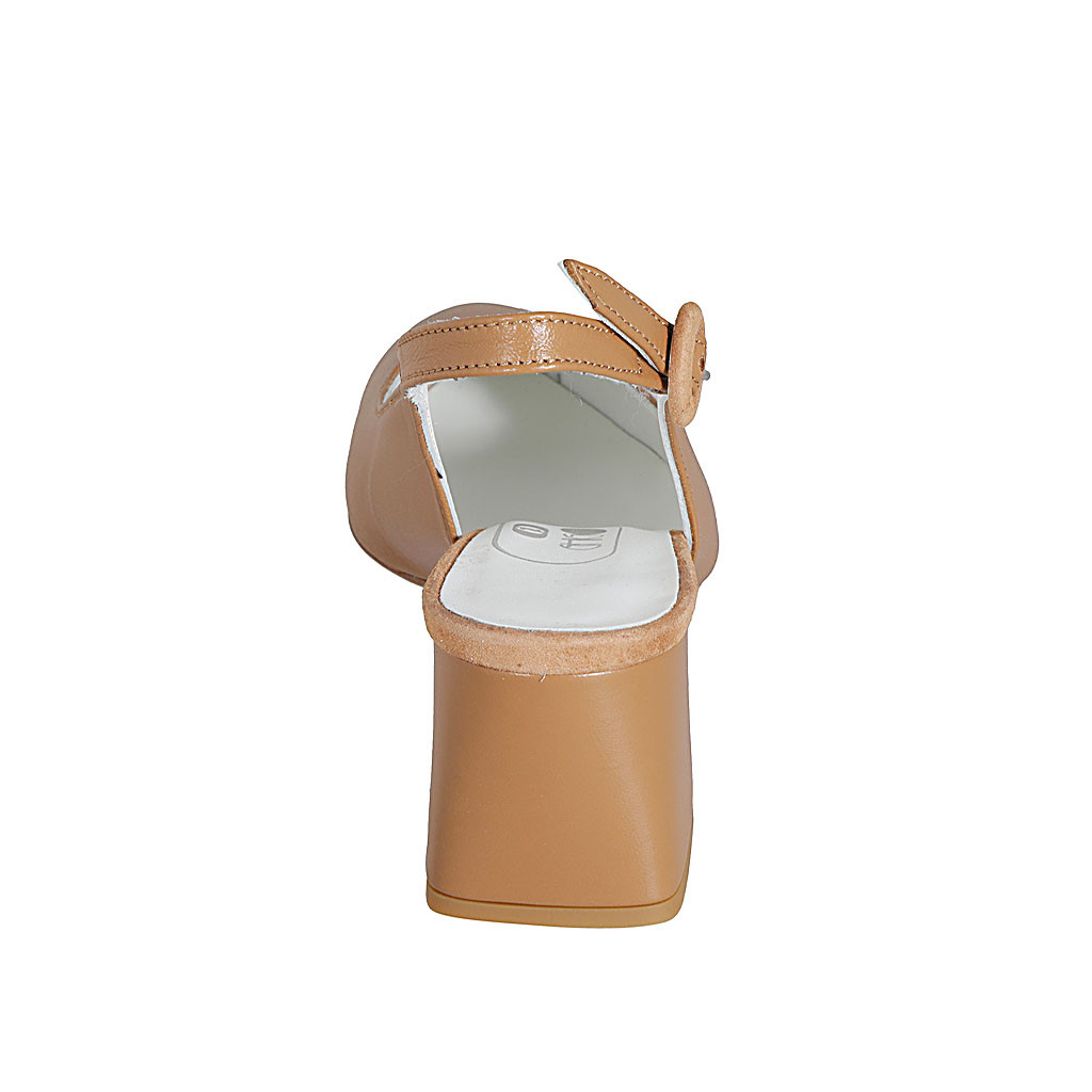Zapato destalonado a punta para mujer en piel cognac tacon 6