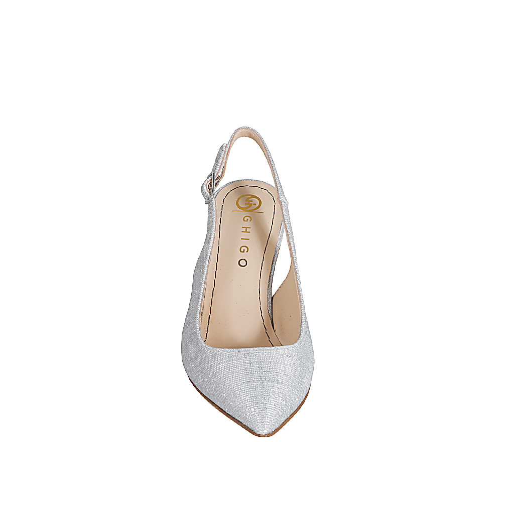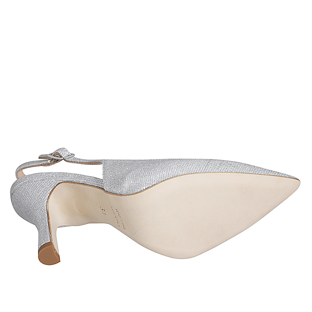 Zapato destalonado a punta para mujer en tejido laminado brillante plateado tacon 7 - Tallas disponibles:  35