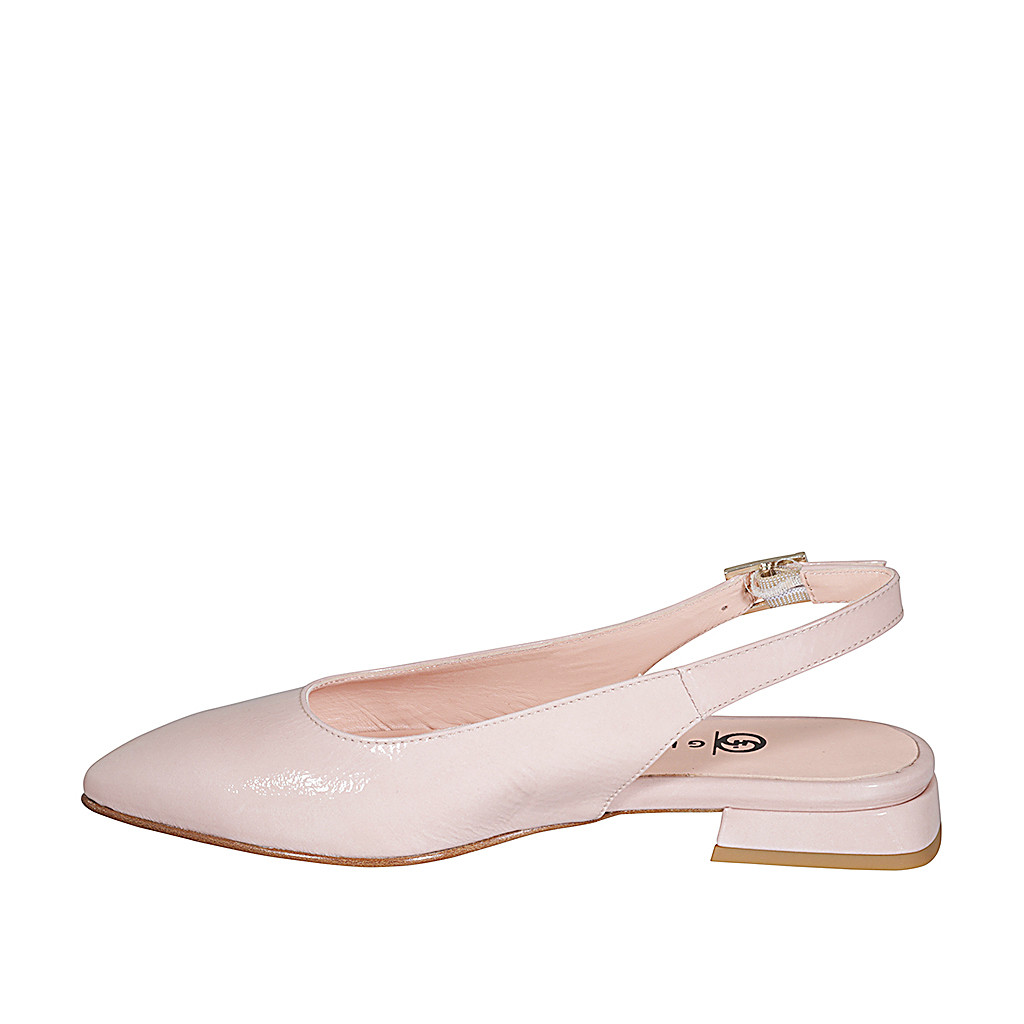 Zapato destalonado a punta para mujer en charol rosado con tacon 2