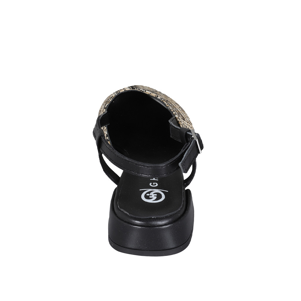 Zapato destalonado para mujer en rafia trensada beis con patrón geométrico y piel negra tacon 2 - Tallas disponibles:  32