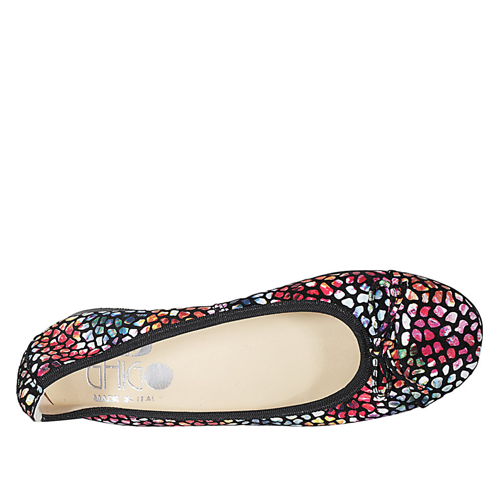 Ballerine à bout rond pour femmes en daim imprimé multicouleur mosaïque avec noeud talon 2 - Pointures disponibles:  32
