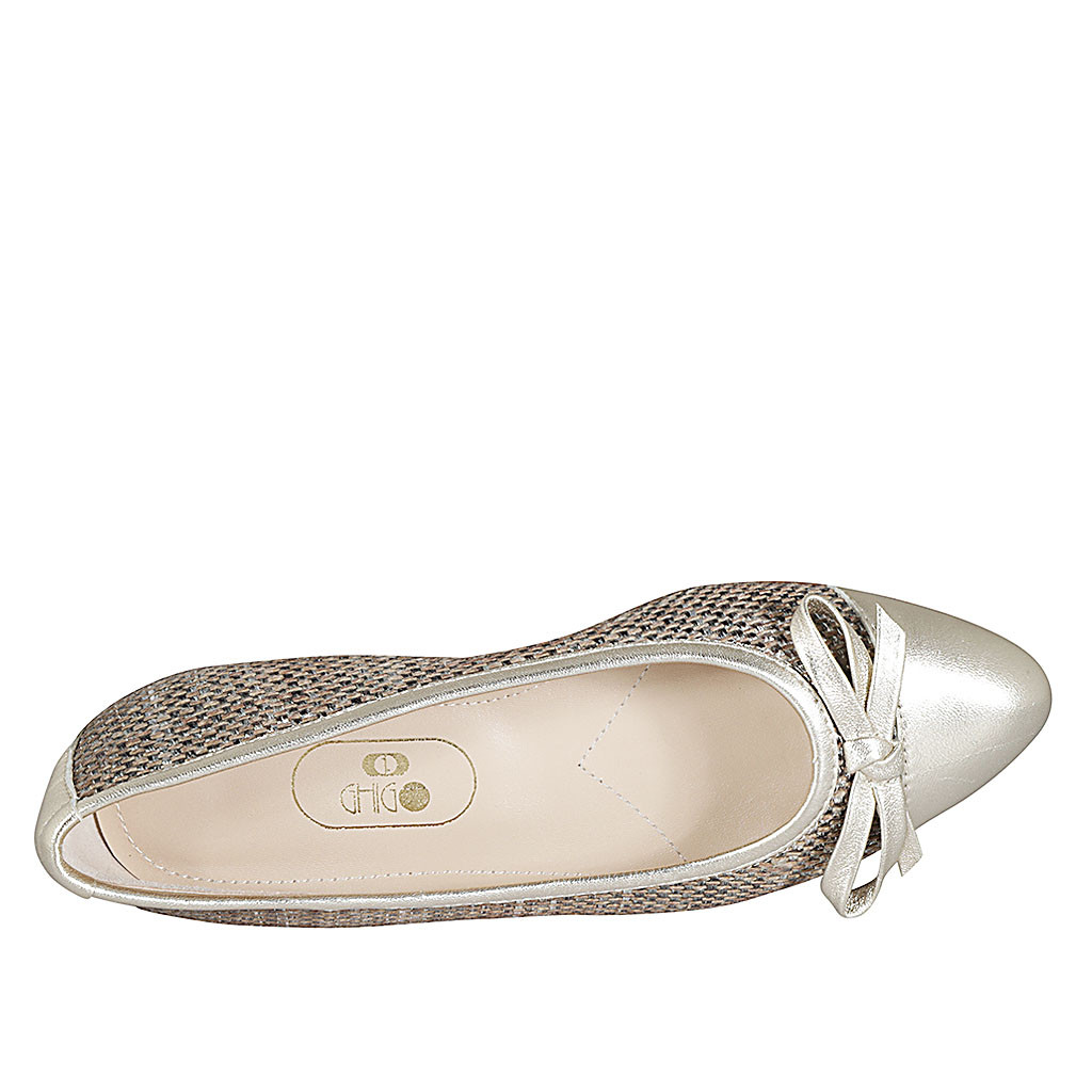 Ballerine à bout pointu pour femmes avec arc en cuir lamé platine et tissu tressé multicouleur talon 2 - Pointures disponibles:  43, 44