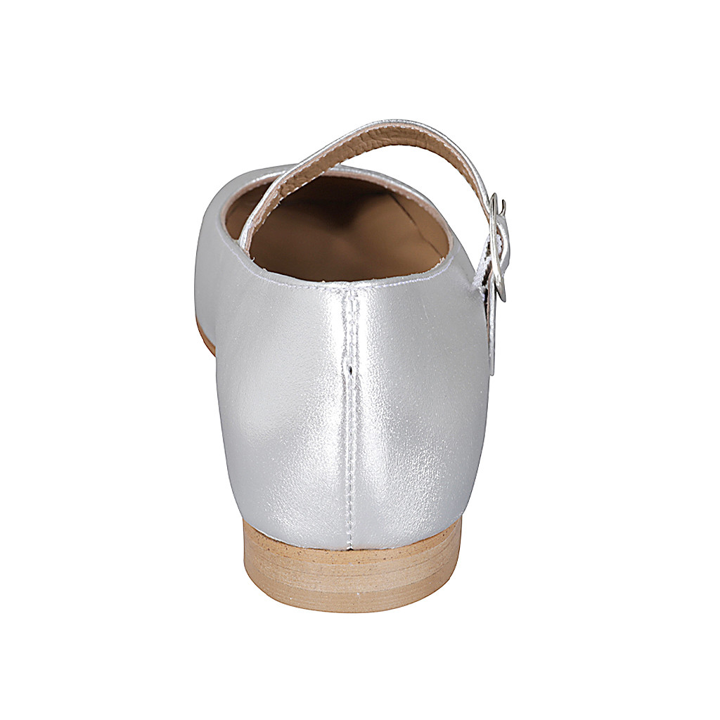 Mary Jane pour femmes avec bout carré et courroie en cuir laminé argent talon 1