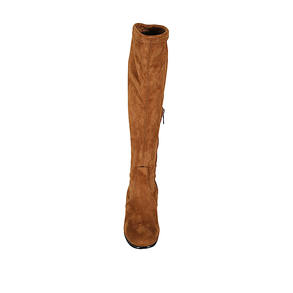 Bottes pour femmes avec demi fermeture éclair en daim et matériau elastique cognac talon 6 - Pointures disponibles:  42, 43
