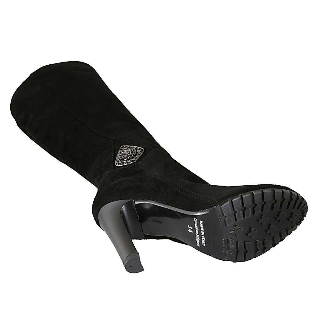 Bottes pour femmes en daim noir avec accessoire et fermeture éalcir talon 10 - Pointures disponibles:  42