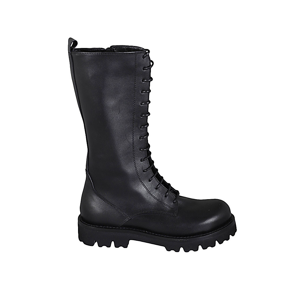 Bottines pour hommes avec élastique et fermeture éclair en cuir noir