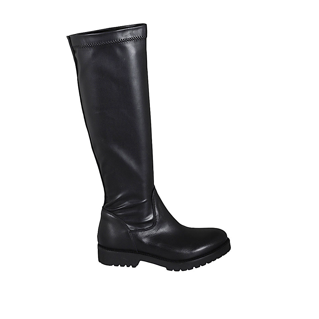Bottes pour femmes en cuir et matériau élastique noir avec talon 3 - Pointures disponibles:  33, 34