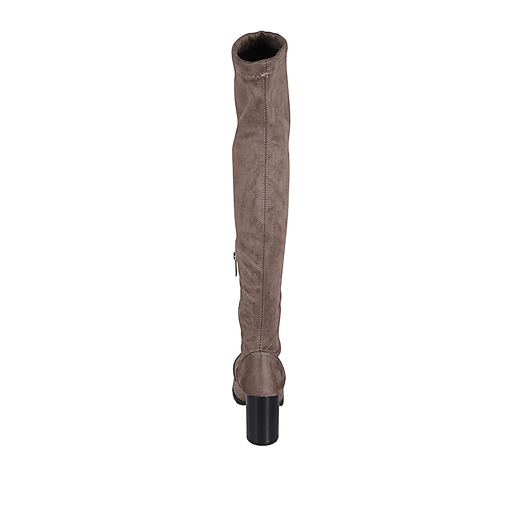 Bottes au dessus de genou pour femmes en daim et matériau elastique taupe avec demi fermeture éclair talon 7 - Pointures disponibles:  33, 42, 43