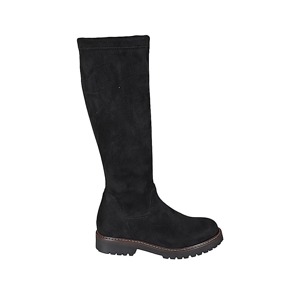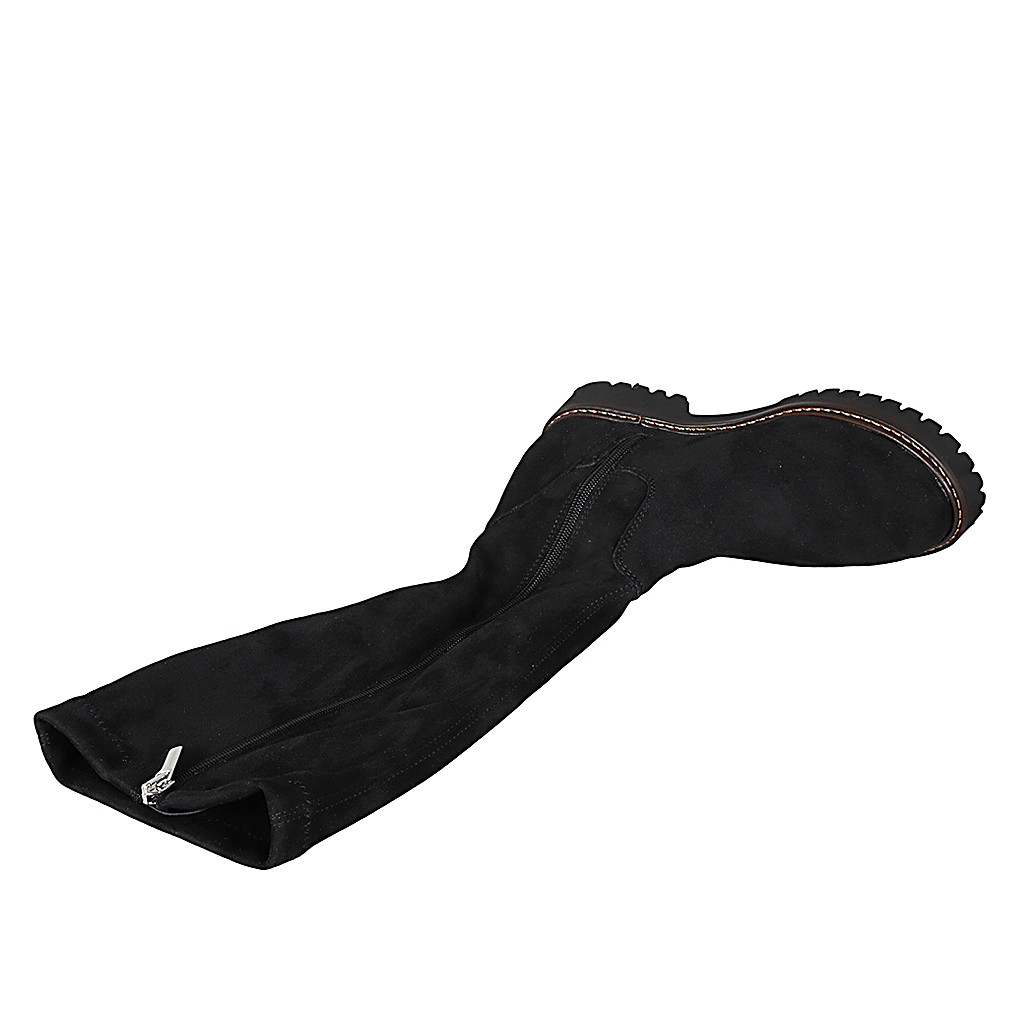 Bottes au genou pour femmes en daim et matériau elastique noir avec fermeture éclair talon 3 - Pointures disponibles:  32