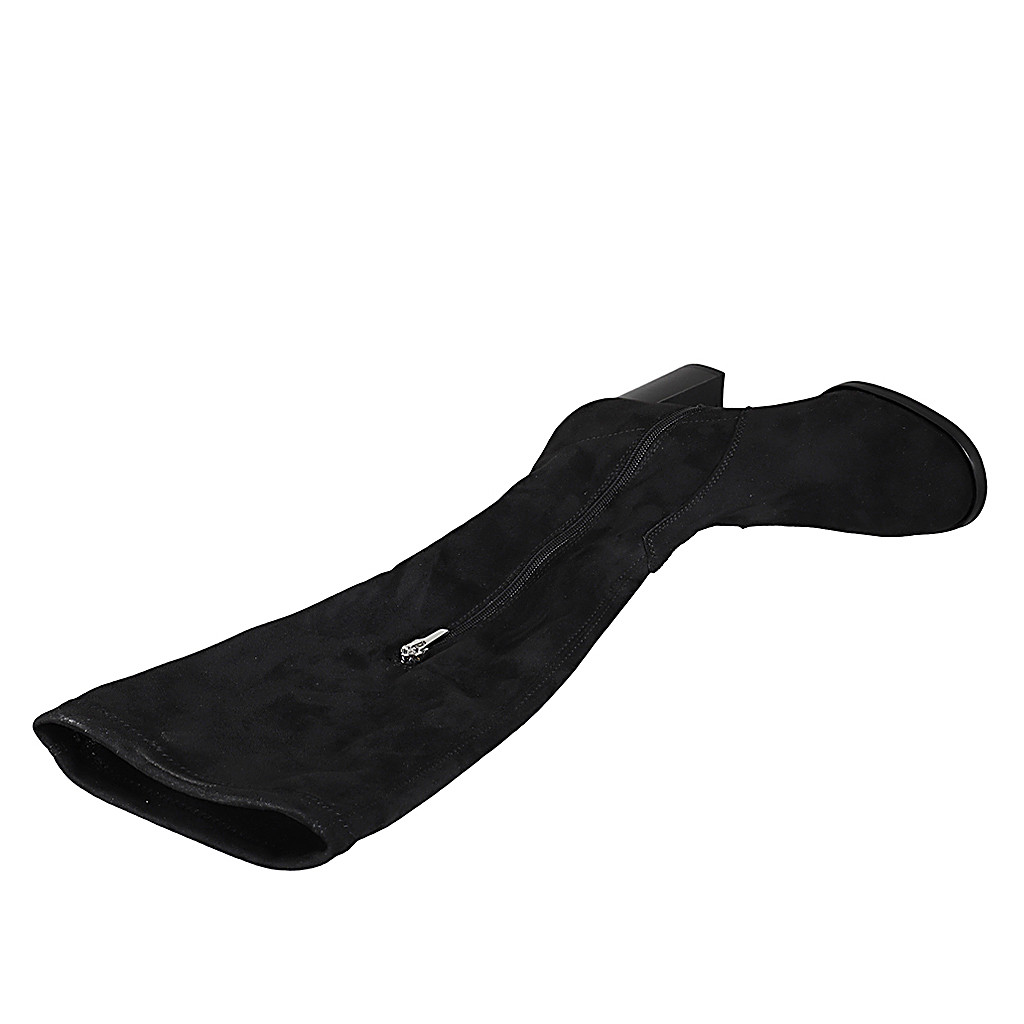 Bottes pour femmes en daim et matériau elastique noir avec demi fermeture éclair talon 8 - Pointures disponibles:  32, 33, 42, 43, 44