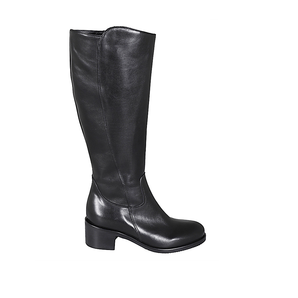 Plateforme bottines por femme avec bout carrè et elastiques en cuir noir et talon 10