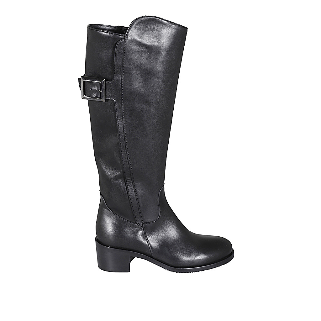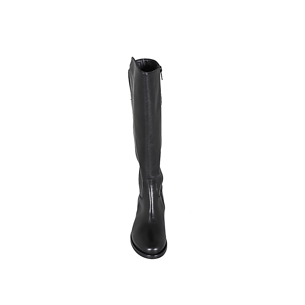 Bottines pour femmes à lacets avec fermetures éclair et bout carré en daim noir talon 4