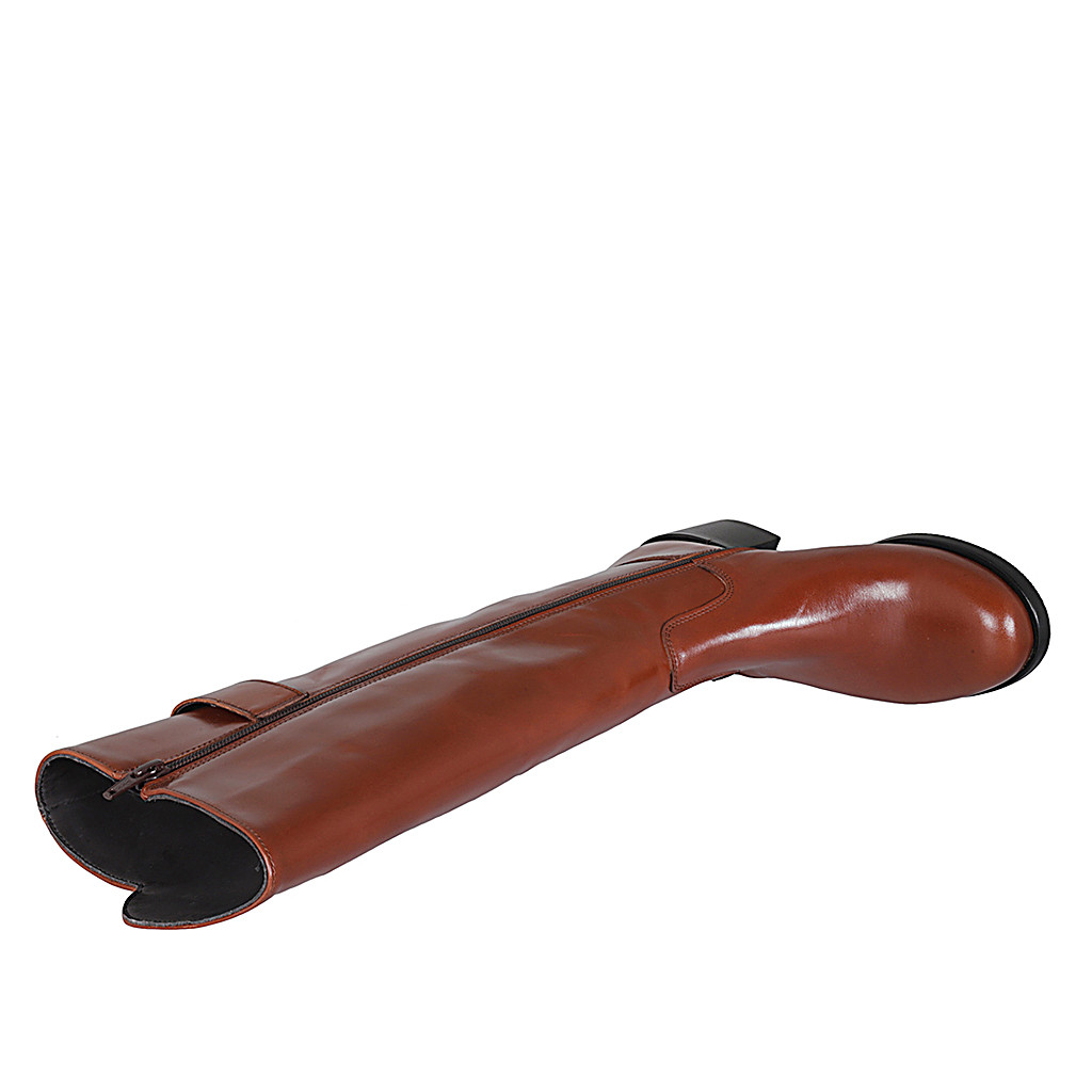 Bottes pour femmes avec boucle et fermeture éclair en cuir cognac talon 5 - Pointures disponibles:  32, 33, 43, 44, 45