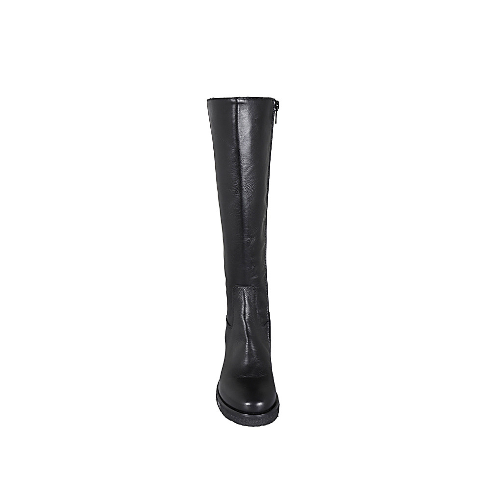Bottines pour femmes avec lacets, bout droit, boucles et fermeture éclair en cuir noir talon 3