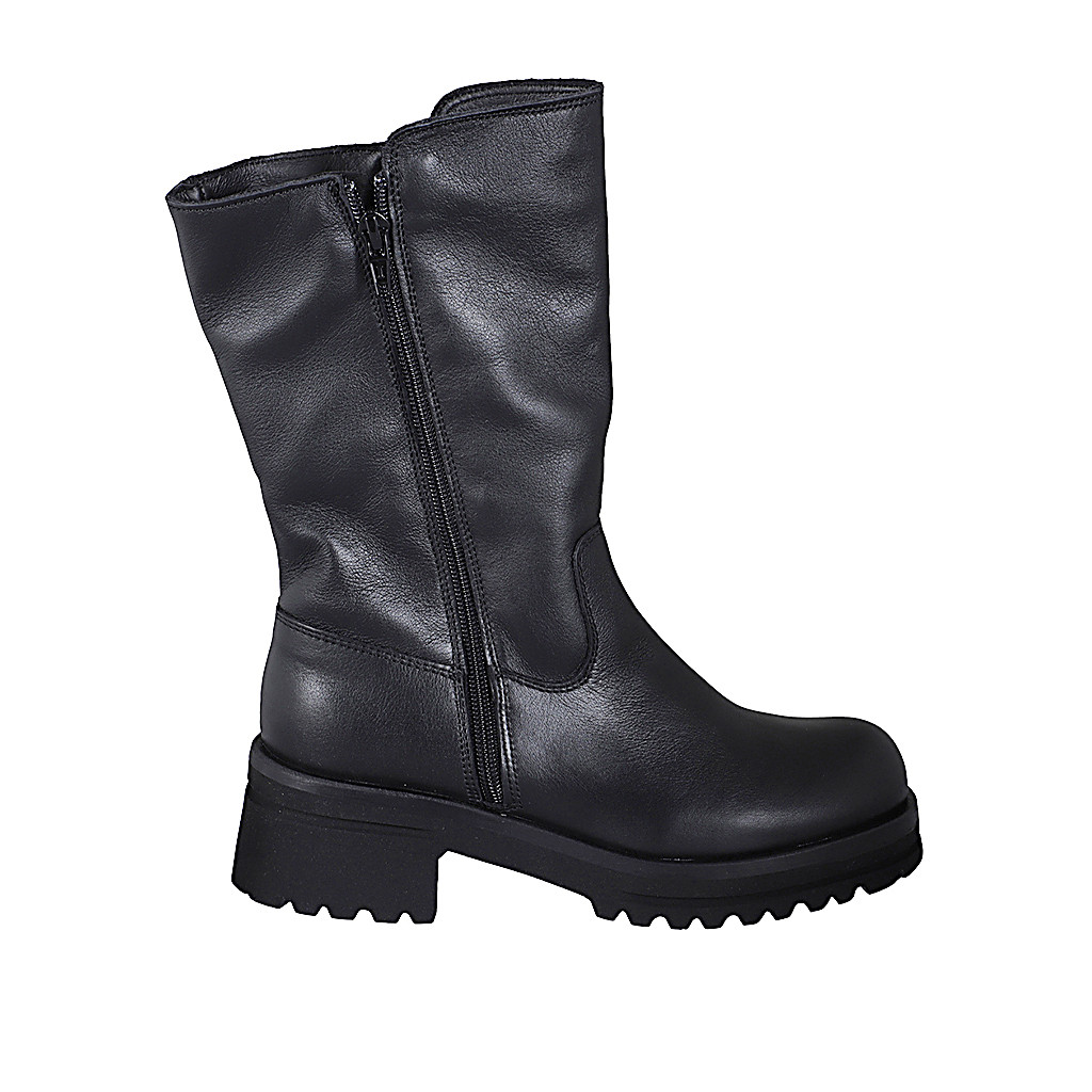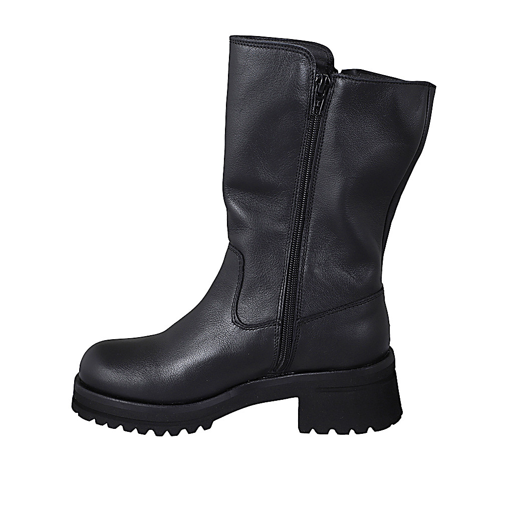 Botte biker pour femme avec double fermeture éclair en cuir noir et talon 5 - Pointures disponibles:  32, 33, 34, 35, 42, 43, 44, 45, 46