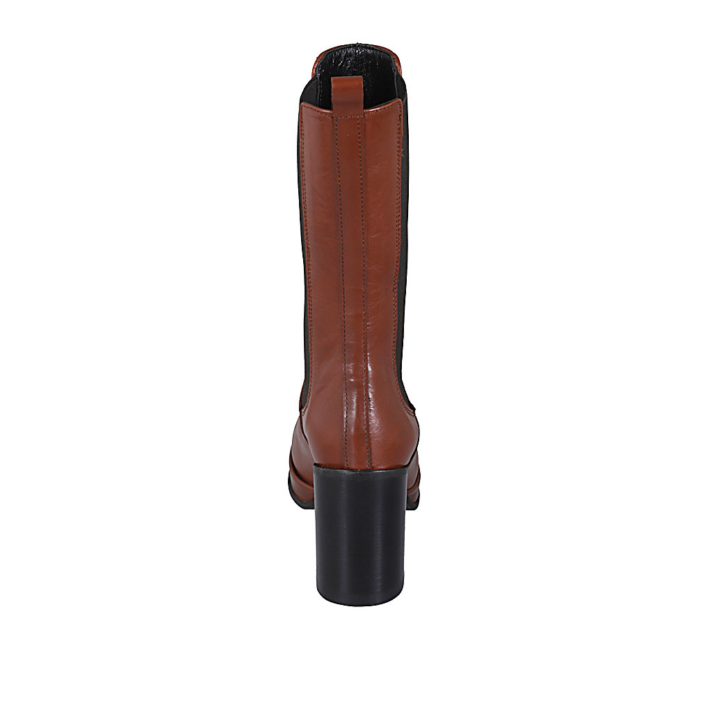 Bottines hautes pour femmes en cuir cognac avec élastiques et plateforme talon 9