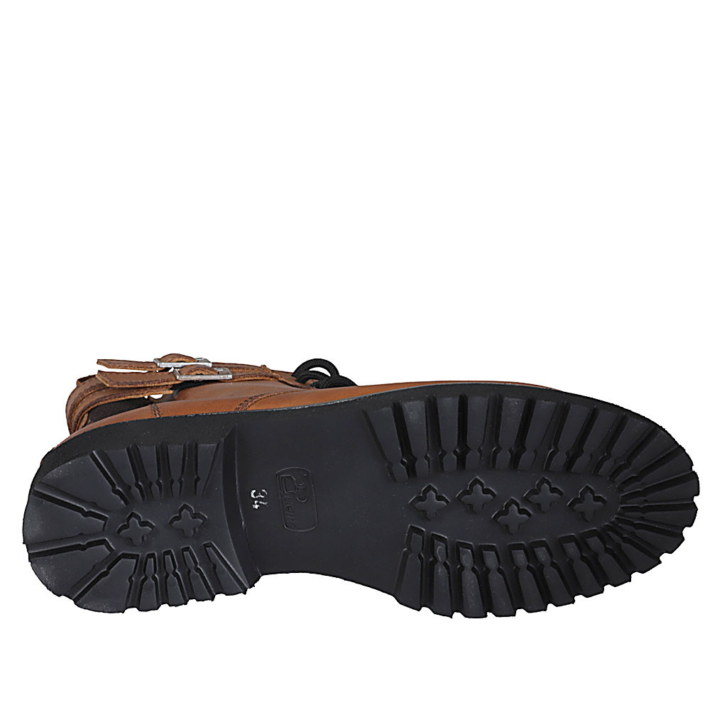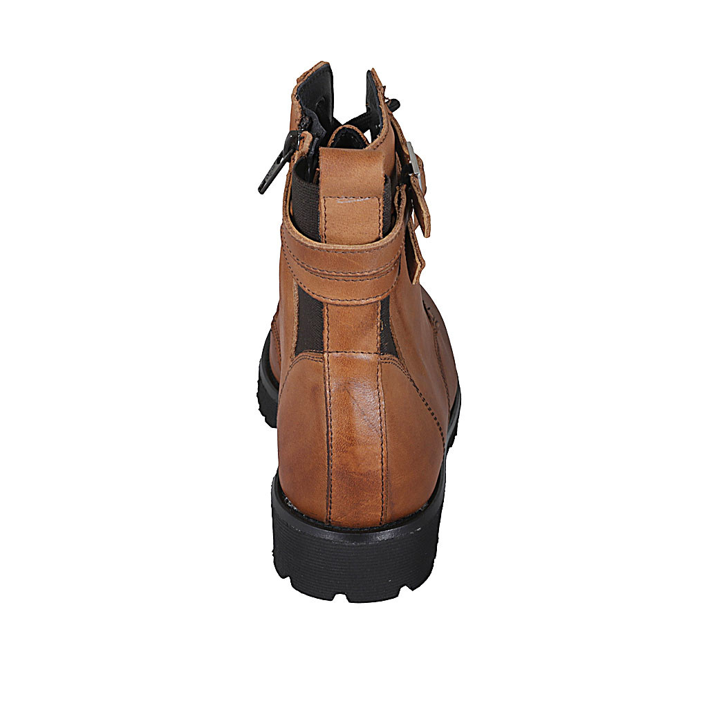 Bottines pour femmes avec lacets, elastiques, boucles et fermeture éclair en cuir cognac talon 3 - Pointures disponibles:  44