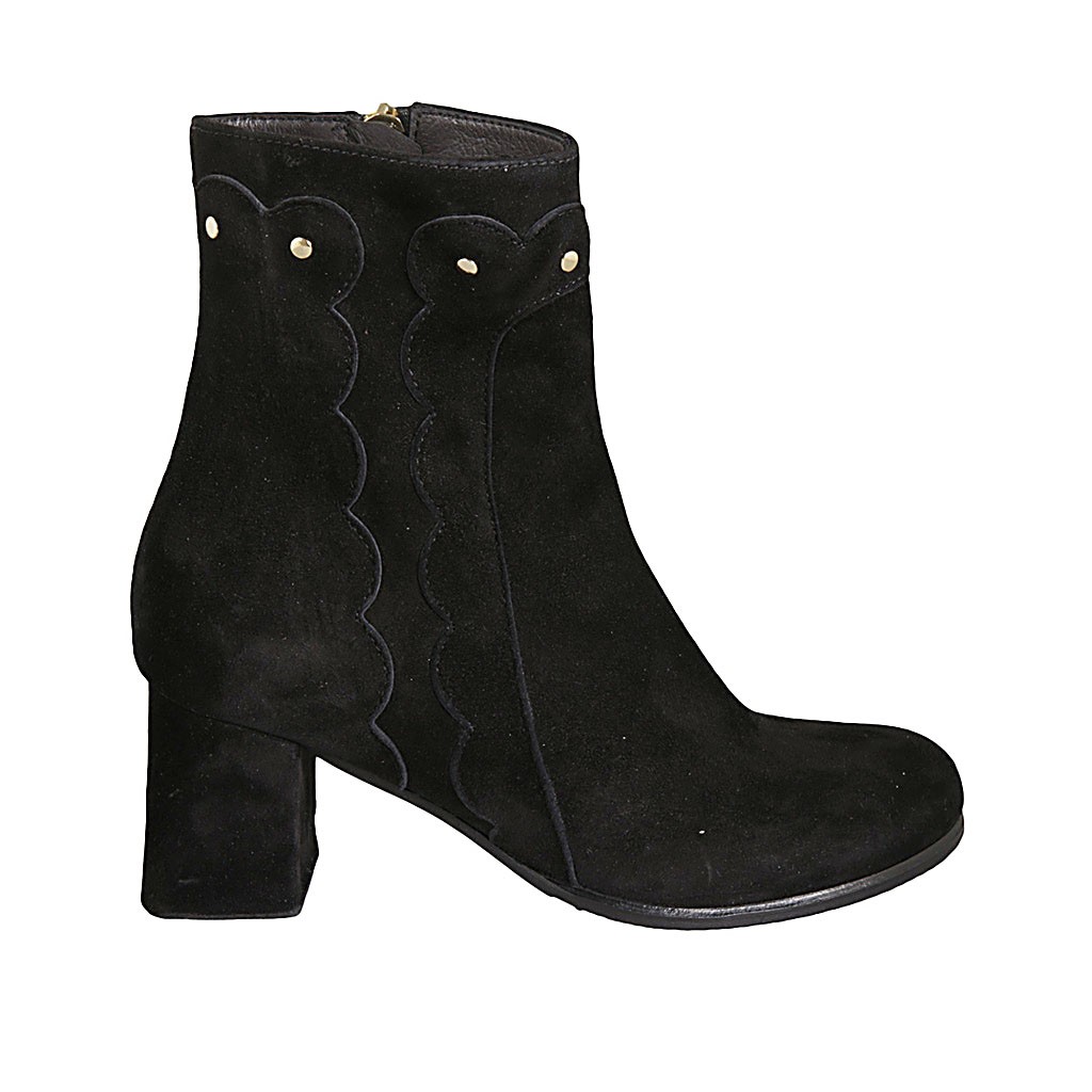 Bottines pour femmes avec lacets et boucle en daim cognac talon 4