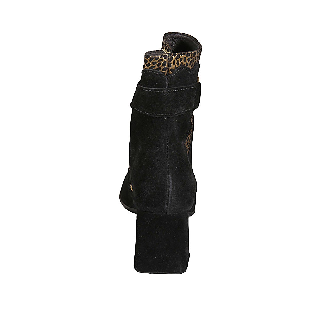 Lacets Bottines pour femes à bout rond avec intérieure fermeture éclair en daim noir et talon 7