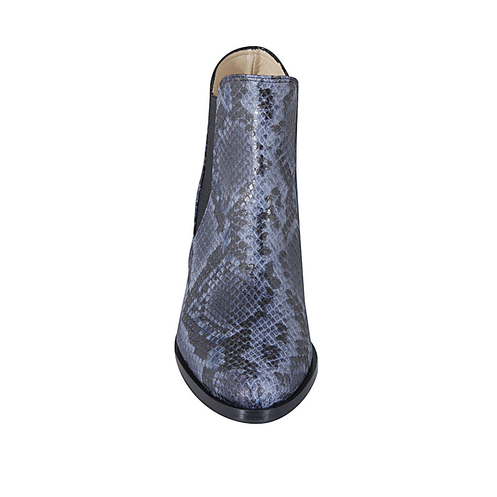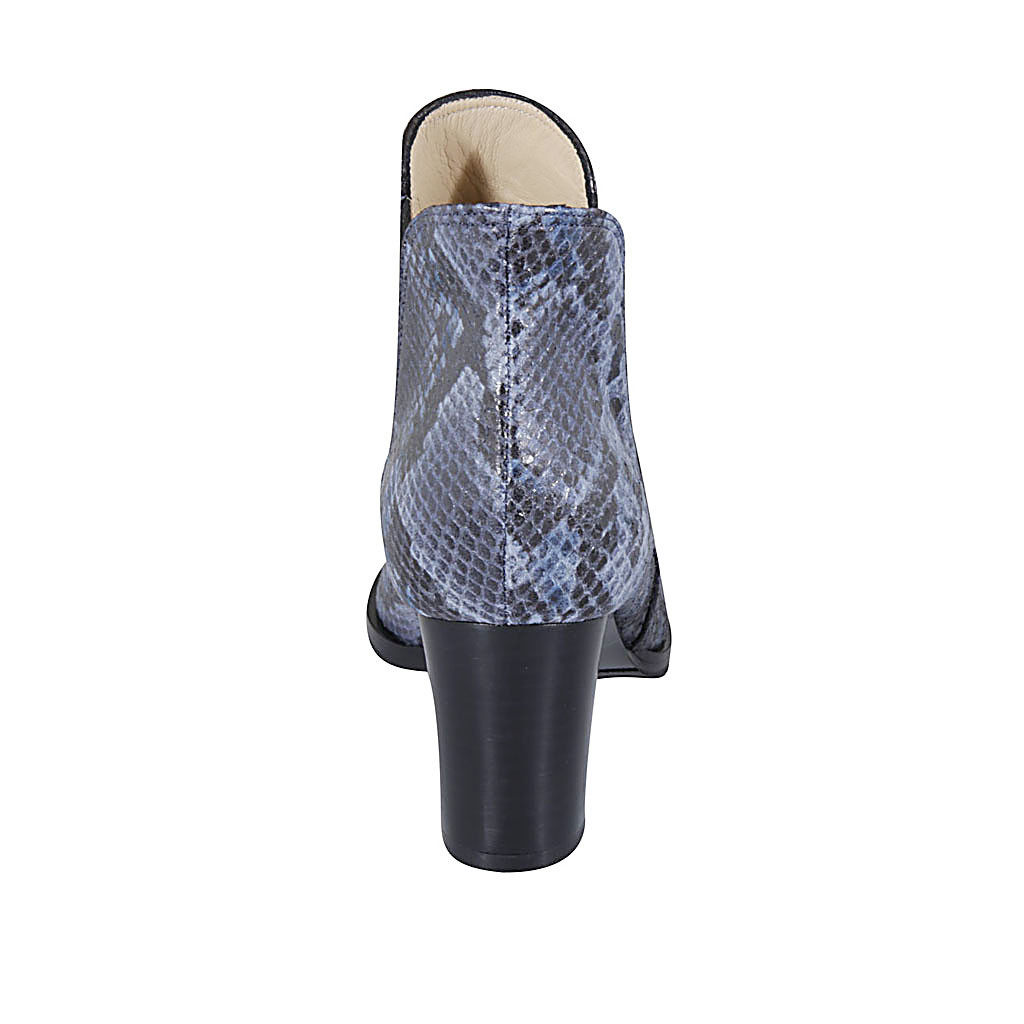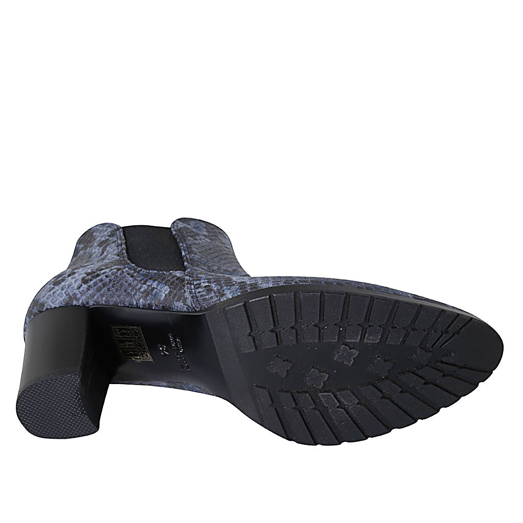 Bottines à bout pointu pour femmes avec elastiques en cuir imprimé bleu talon 7