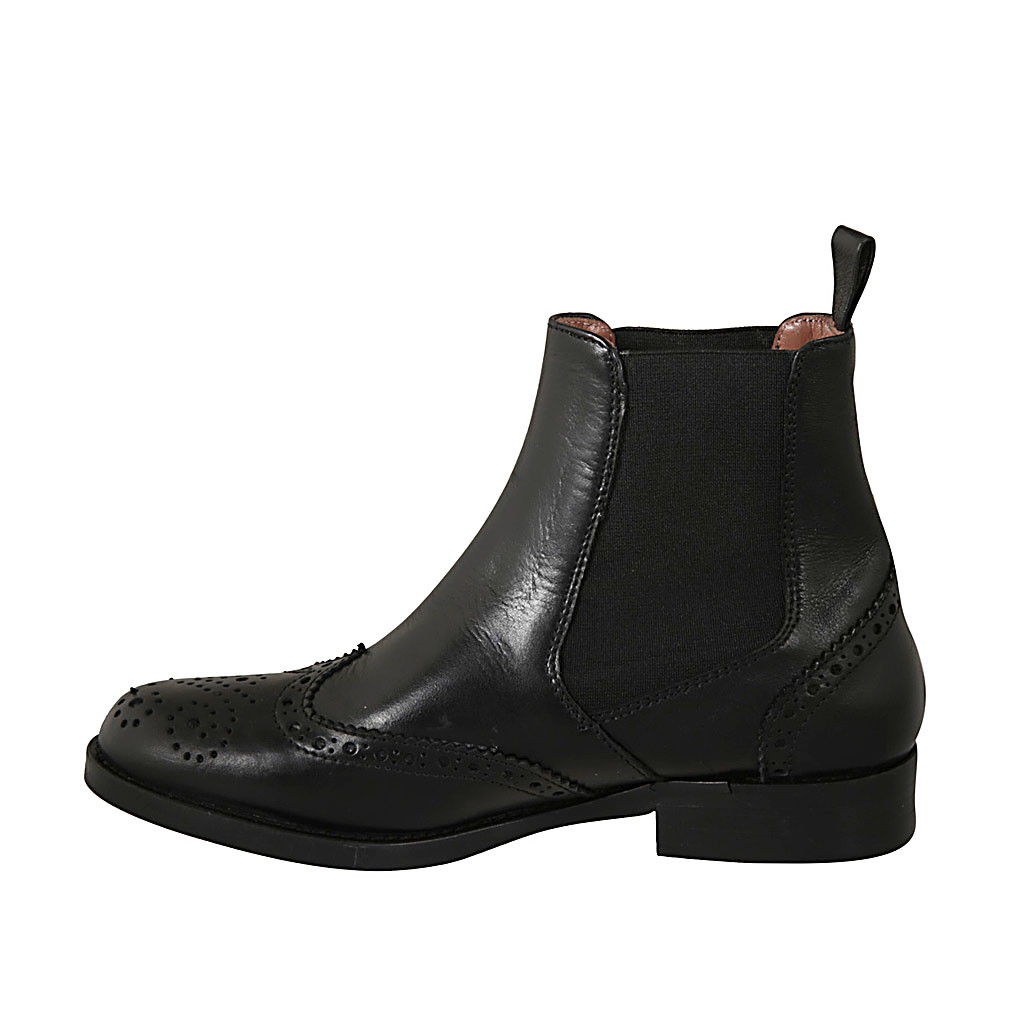 Bottines avec elastiques et bout Brogue pour femmes en cuir noir talon 3 - Pointures disponibles:  32
