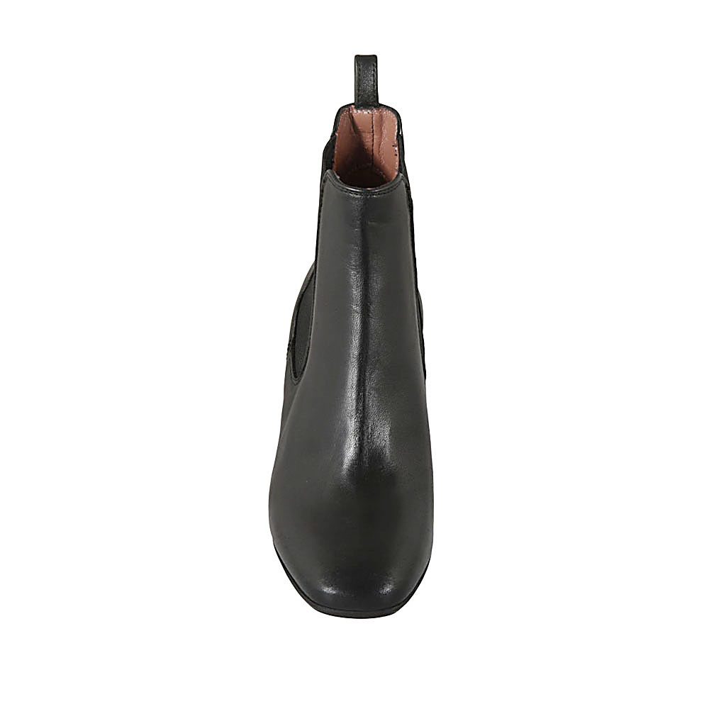 Mocasin à bout pointu pour femmes avec accessoire en daim vert et cuir verni noir talon 3