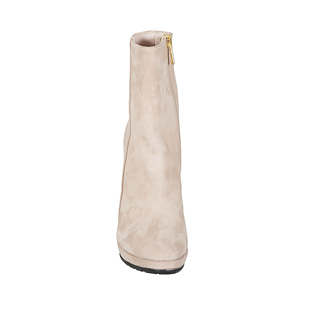 Bottines pour femmes avec fermeture éclair en cuir lisse cognac talon 3