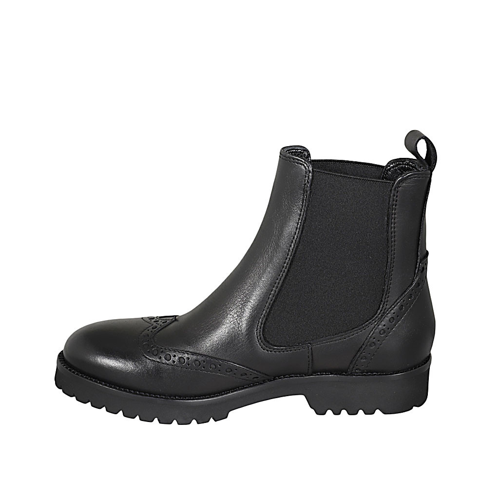 Bottines pour femmes avec élastiques et bout golf en cuir noir talon 3 - Pointures disponibles:  33