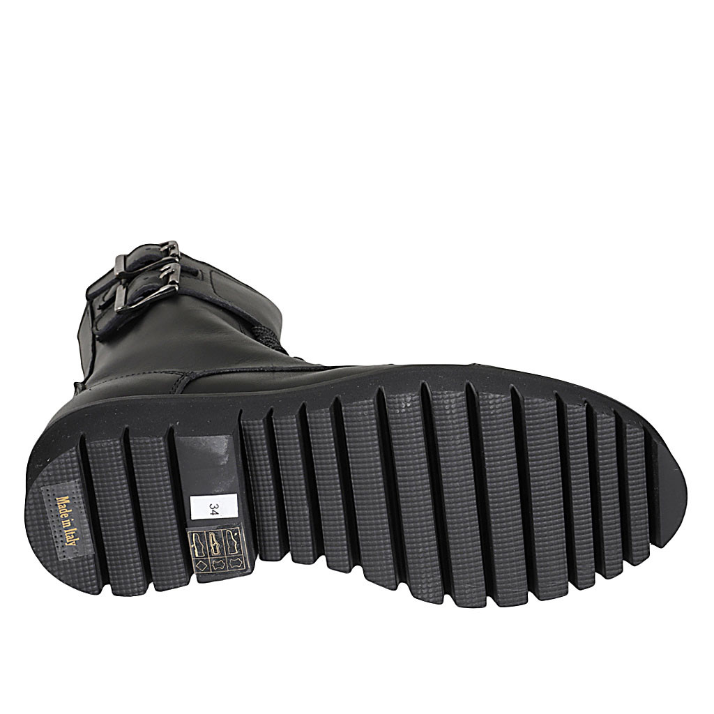 Bottines pour femmes stil combat avec lacets, bout droit, boucles et fermeture éclair en cuir noir talon 4 - Pointures disponibles:  32