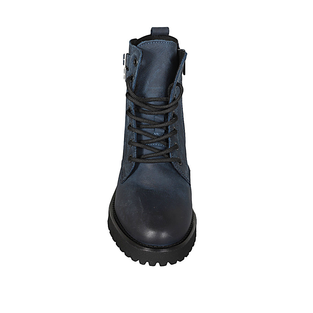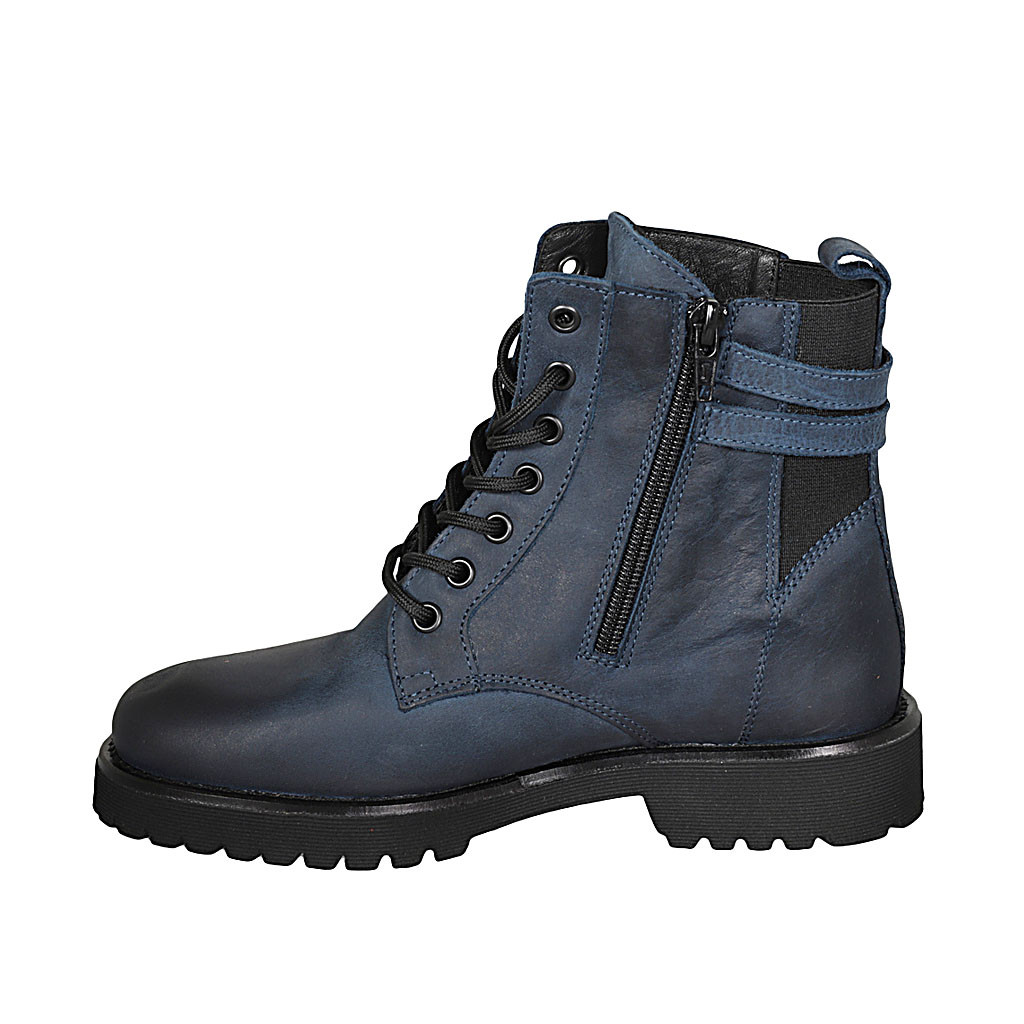 Bottines pour femmes avec lacets, elastiques, boucles et fermeture éclair en cuir bleu talon 3 - Pointures disponibles:  32