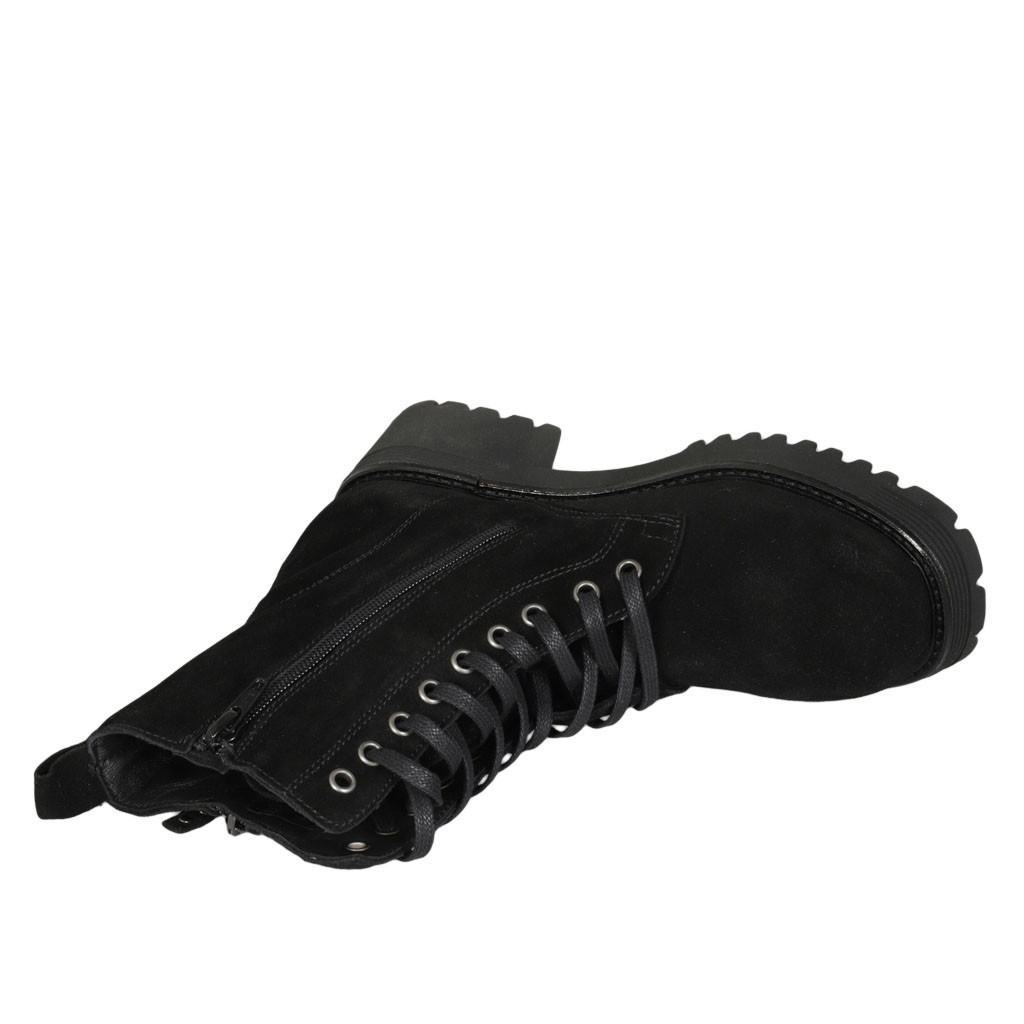 Bottines pour femmes à bout pointu avec zip intérieur en cuir verni noir talon 2