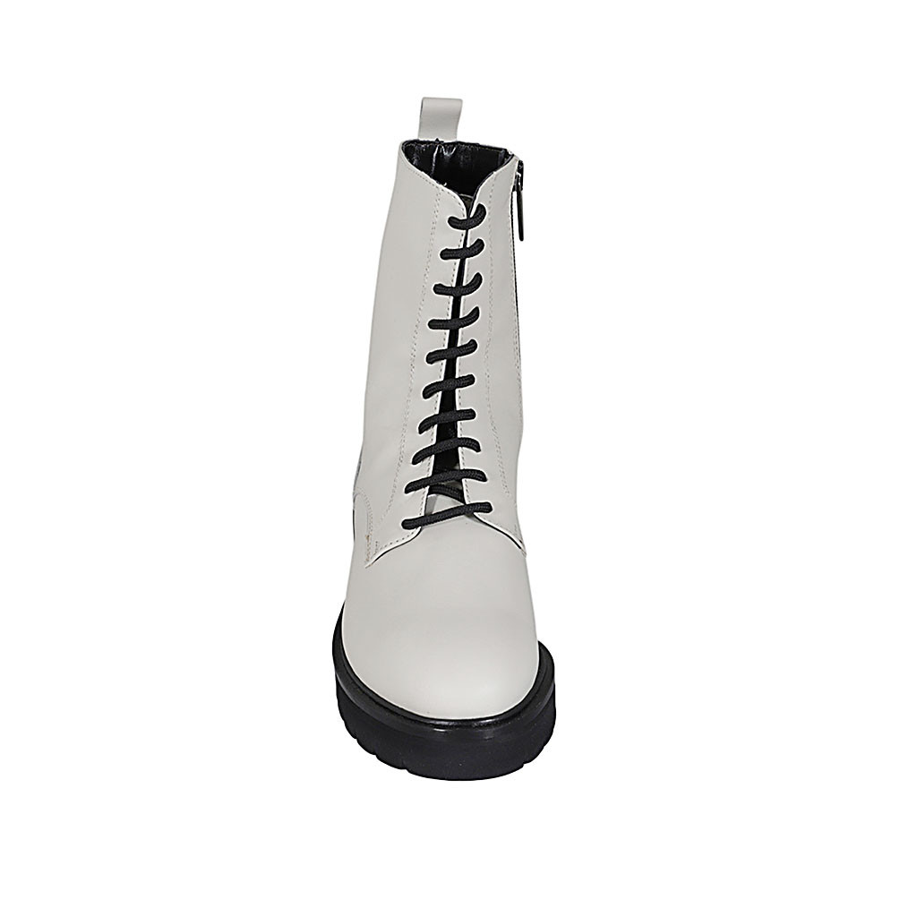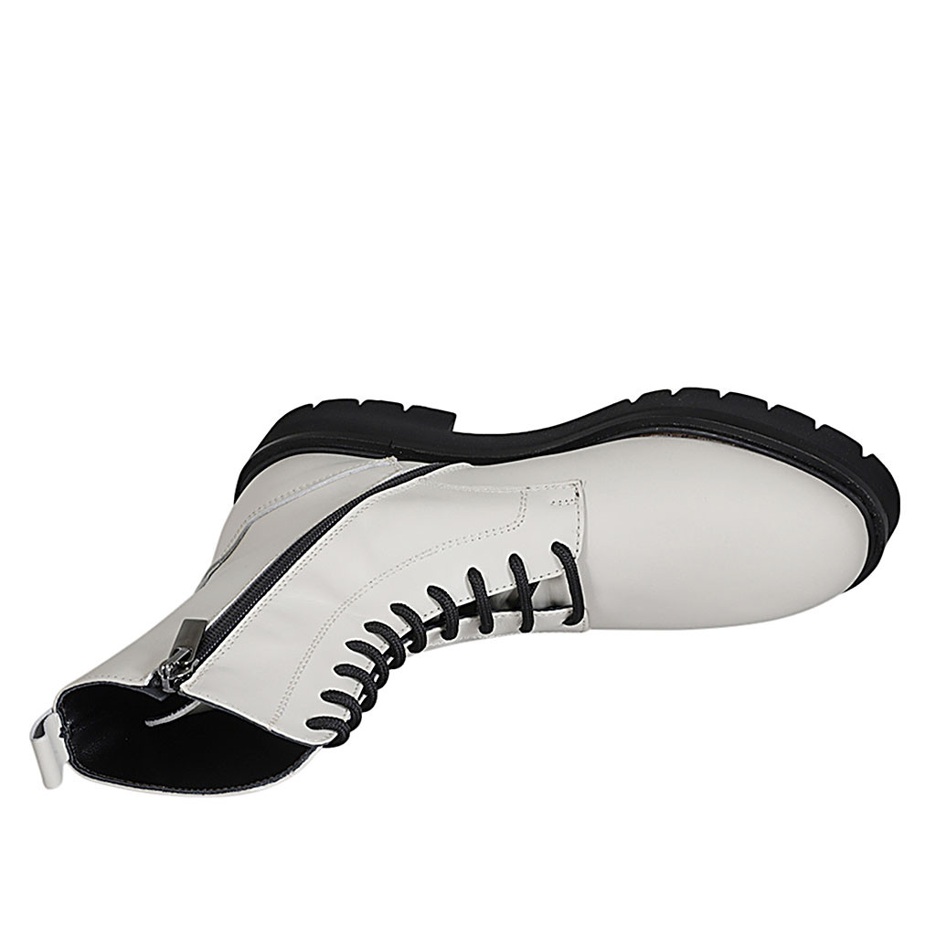 Bottines pour femmes stil combat avec lacets et fermeture éclair en cuir blanc talon 3 - Pointures disponibles:  33, 42, 43