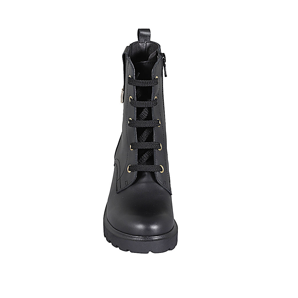 Mule pour femmes en cuir noir avec fermeture velcro et semelle amovible talon compensé 4