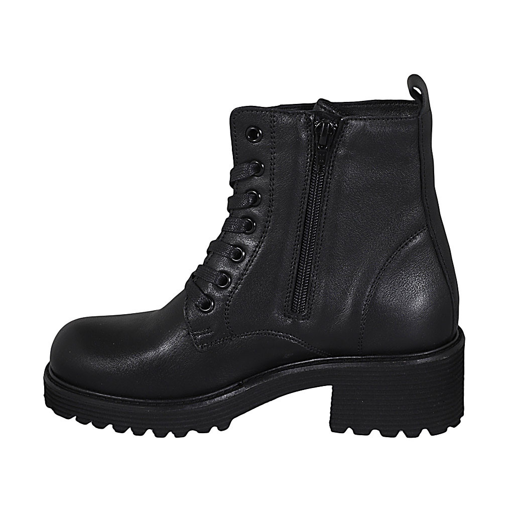 Bottines pour femmes en cuir noir avec fermeture éclair et boucle talon 5