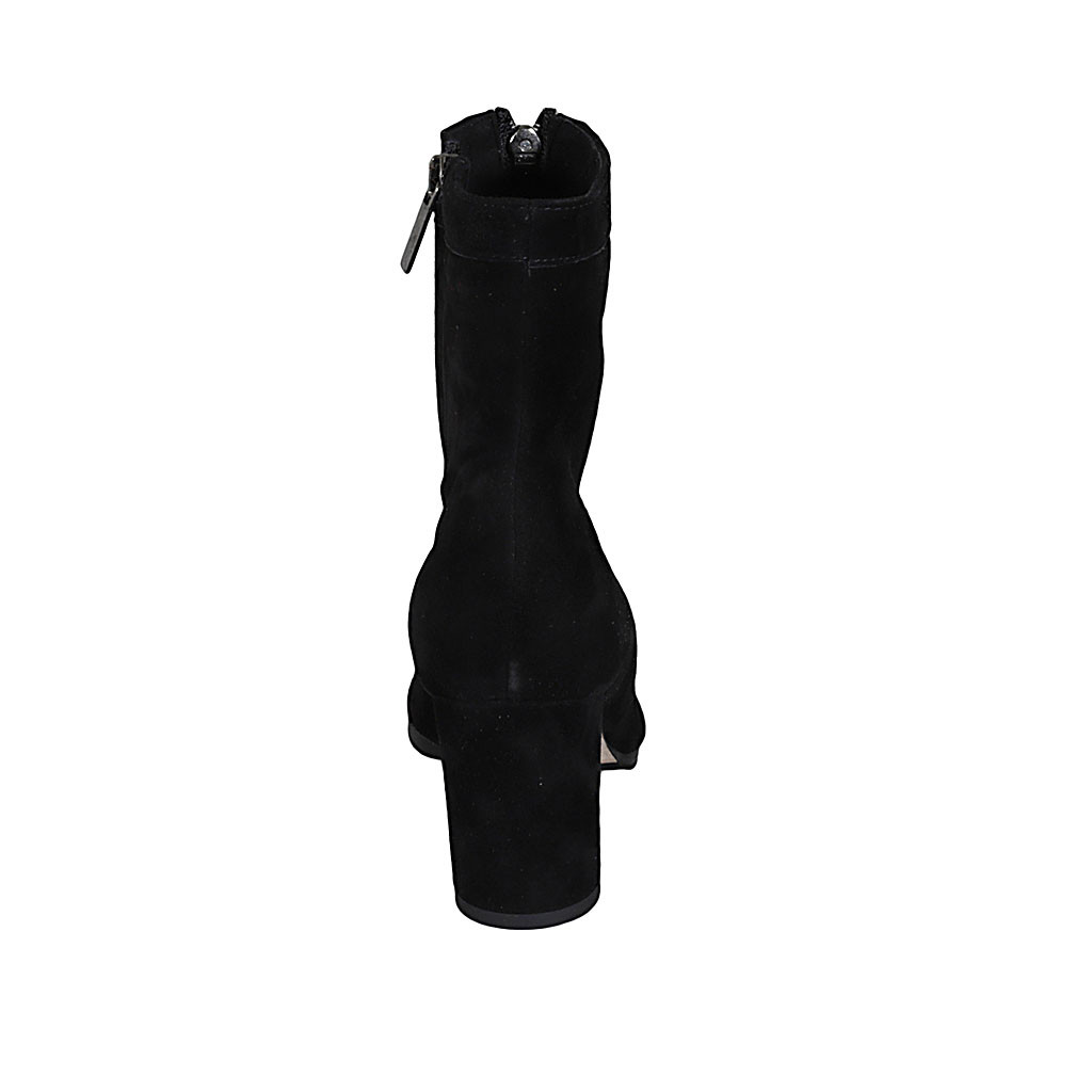 Chaussure ouverte au talon pour femmes en daim et cuir noir avec elastique et noeud talon 7