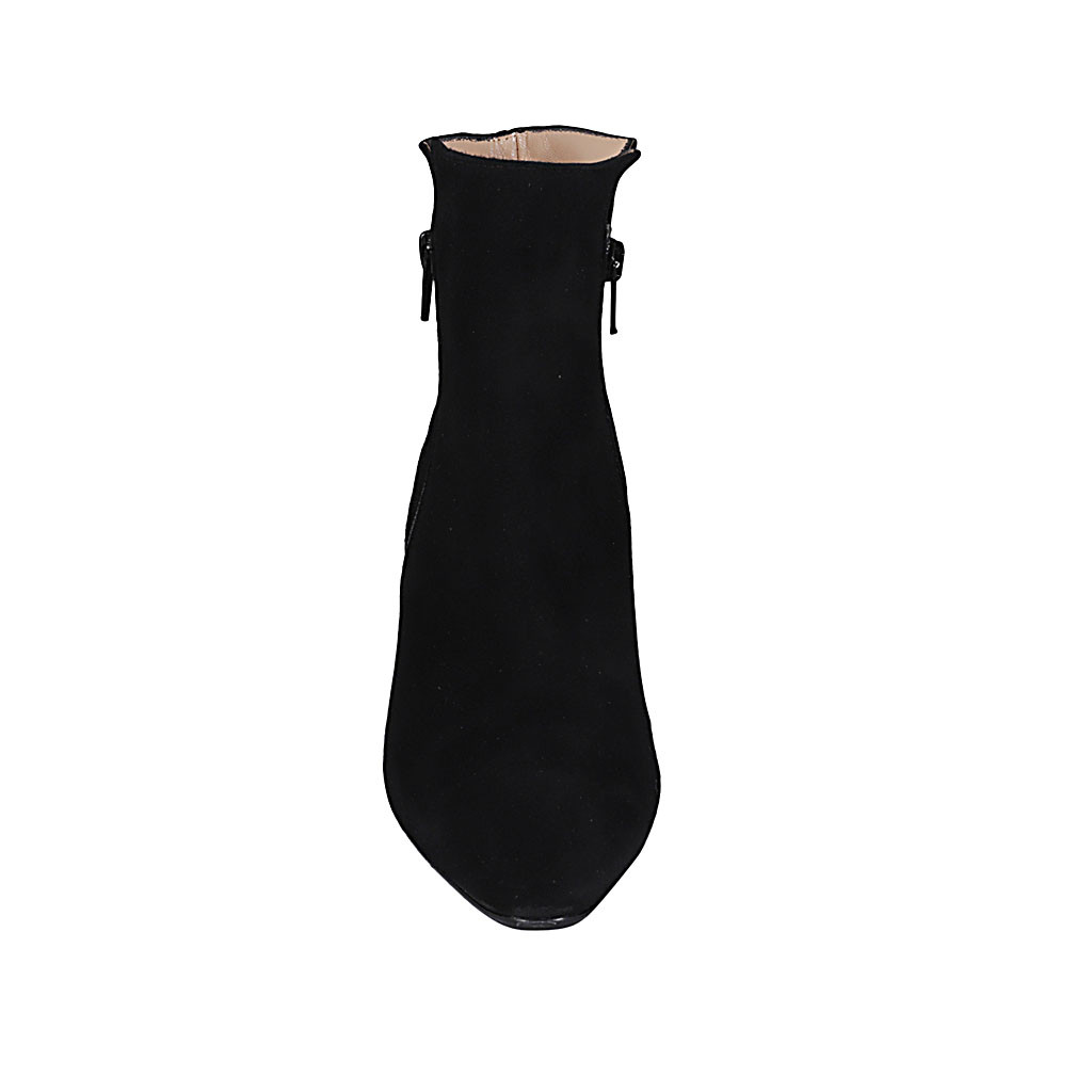 Bottines à bout pointu pour femmes en daim noir avec fermetures éclair talon 6